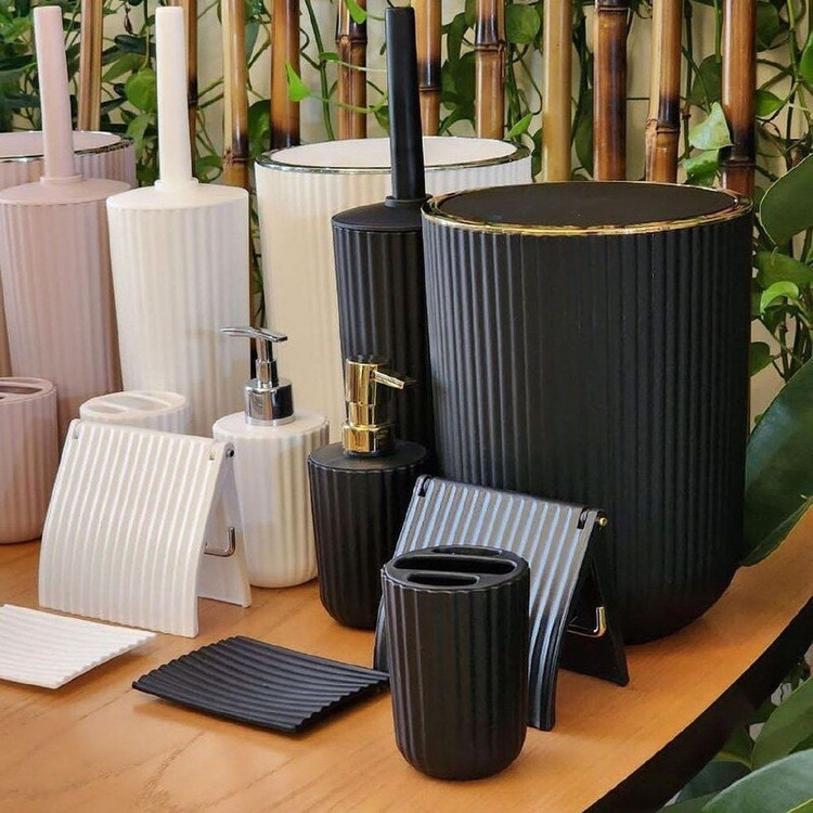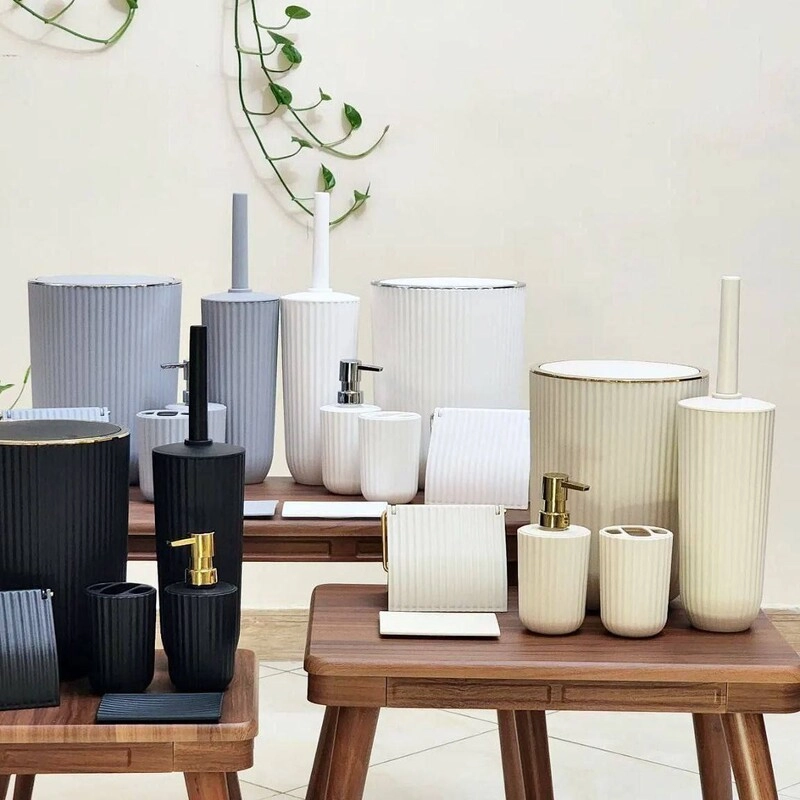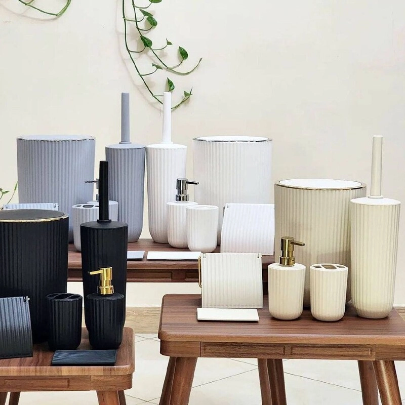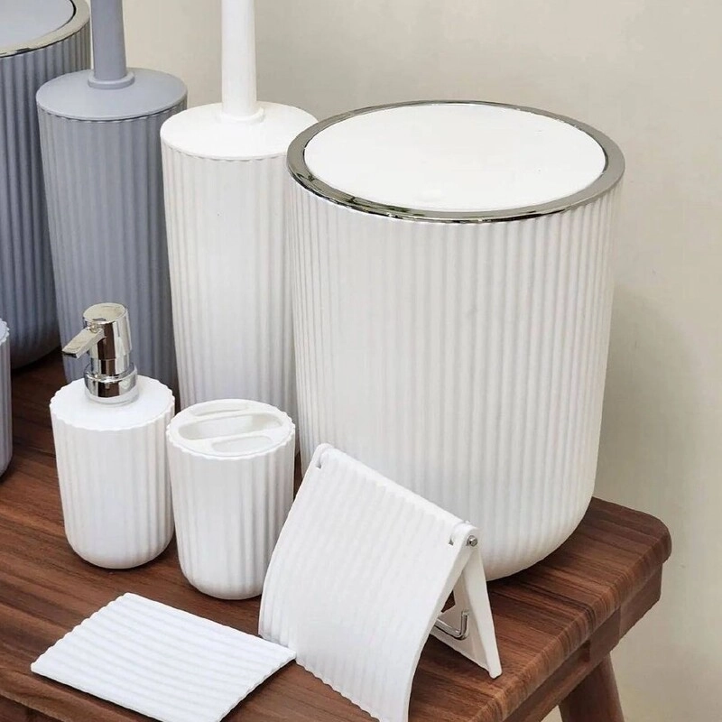 ست بهداشتی کامل زبرا همارا شامل سطل با درب بادبزنی فرچه مخزن دار جای مایع جای مسواک جای صابون و جای رول دستمال جنس abs کیفیت درجه یک جنس پلاستیک فشرده ABS ضد خش و ضد لک...👍 در 4 رنگ زیبا کیفیت عالی و درجه ۱ سطل و فرچه همارا هم جدا فروخته میشود